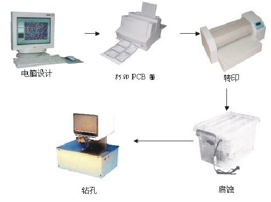 系統(tǒng)配置:計(jì)算機(jī)、激光打印機(jī)、轉(zhuǎn)印機(jī)、腐蝕桶、高速視頻鉆、轉(zhuǎn)印紙、合金鉆頭