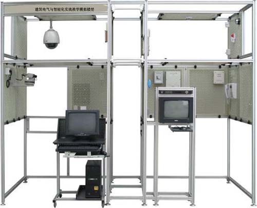 "建筑電氣與智能化實(shí)踐教學(xué)模擬樓層"是由1臺(tái)鋁合金支架和17塊網(wǎng)孔板搭建而成的兩層模擬樓宇建筑,分別模擬一棟樓宇建筑的一層機(jī)房、一層樓道、一層樓道大門(mén)、二層樓道、二層樓道窗戶(hù)、二層住戶(hù)、二層住戶(hù)大門(mén)、二層住戶(hù)窗戶(hù)、垂直豎井和建筑周邊。房間提供正反面?zhèn)葔晚攭Φ陌惭b范圍,可在上面安裝各種樓宇智能化器件;同時(shí)還提供房間大門(mén)和窗戶(hù),可在上面安裝電插鎖、電磁鎖、門(mén)磁和窗戶(hù)防盜探測(cè)器等器件,實(shí)現(xiàn)智能建筑各類(lèi)系統(tǒng)的安裝與運(yùn)行,如"對(duì)講門(mén)禁及室內(nèi)安防系統(tǒng)"和"閉路電視監(jiān)控及周邊安防系統(tǒng)"等。相比于單層模擬樓層,兩層模擬樓層需要考慮智能建筑的多樓層結(jié)構(gòu)關(guān)系,除了能夠培養(yǎng)學(xué)生的工程施工能力外,更能夠培養(yǎng)其工程設(shè)計(jì)能力與工程創(chuàng)新能力,符合高等院校的實(shí)踐教學(xué)需求。