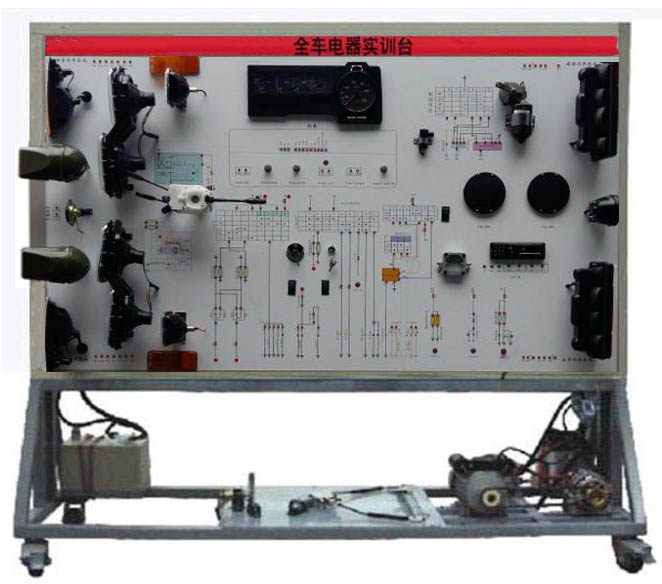 二、功能特點 1.真實可運行的汽車整車電器系統(tǒng),充分展示汽車整車電器系統(tǒng)的組成結(jié)構(gòu)。 接通電源,操縱示教板上的各種電器開關(guān)、按鈕、真實演示汽車儀表系統(tǒng)、燈光系統(tǒng)、雨刮系統(tǒng)、喇叭系統(tǒng)、發(fā)動機電器系統(tǒng)、起動系統(tǒng)和充電系統(tǒng)等汽車電器各系統(tǒng)的工作過程。 2.設(shè)備面板采用耐創(chuàng)擊、耐污染、防火、防潮的高級鋁塑板,表面經(jīng)特殊工藝噴涂底漆處理;面板打印有不會褪色的彩色電路圖;學(xué)員可直觀對照電路圖和實物,認識和分析汽車整車電器各系統(tǒng)的工作原理。 3.示教板面板上安裝有檢測端子,可直接在面板上檢測汽車整車電器各系統(tǒng)電路元件的電信號,如電阻、電壓、電流、頻率信號等。 4.設(shè)備面板部分采用面板部分采用1.5mm冷板沖壓成形結(jié)構(gòu),外形美觀;底架部分采用鋼結(jié)構(gòu)焊接,表面采用噴涂工藝處理,帶自鎖腳輪裝置。 三、技術(shù)規(guī)格 外形尺寸(約):2080×700×1900mm(長×寬×高) 動力電源:三相四線(或三相五線)380V±10% 50Hz 工作電壓:直流12V 工作溫度:-40℃~+50℃ 三相異步電動機 型 號:YT 100L1-4 電壓:AC 220V/380V 功率:2.2KW 轉(zhuǎn)速:1420r/min 顏色:7032 鋼管:40*40*3mm 機柜:1.5mm冷板沖壓成形,背面設(shè)置維修門; 移動腳輪:100*60mm