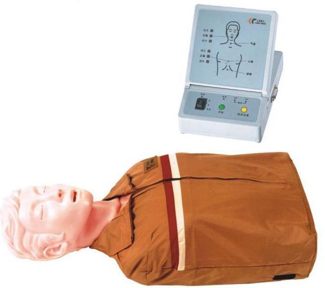 心肺復(fù)蘇,國際代稱CPR。在生活中,健康人由于心臟驟停(如觸電、溺水、高空作業(yè)事故、交通事故、旅游意外、心臟疾病、心肌梗塞、自然災(zāi)害、意外事故等所造成的心臟驟停),而必須采取胸外按壓、人工口鼻呼吸、心內(nèi)注射、氣道放開等搶救過程。使病人追短時(shí)間內(nèi)得救。在搶救過程中胸外按壓位置,按壓強(qiáng)度是否正確,人工呼吸吹入的吹氣量是否足夠等規(guī)范動(dòng)作是否正確,是搶救病人是否成功的關(guān)健。因此,在系列搶救過程中,必須要掌握心肺復(fù)蘇技術(shù)。模擬胸外按壓、人工呼吸、心內(nèi)注射、頸動(dòng)脈模擬搏動(dòng)、瞳孔由一只散大與一只縮小的比較認(rèn)識(shí),達(dá)到掌握操作訓(xùn)練心肺復(fù)蘇術(shù)的基本要求。對操作正確與否,有光電信號顯示、數(shù)碼顯示等功能,它是訓(xùn)練搶救人員進(jìn)行心肺急救技術(shù)訓(xùn)練的要求的模擬機(jī)。